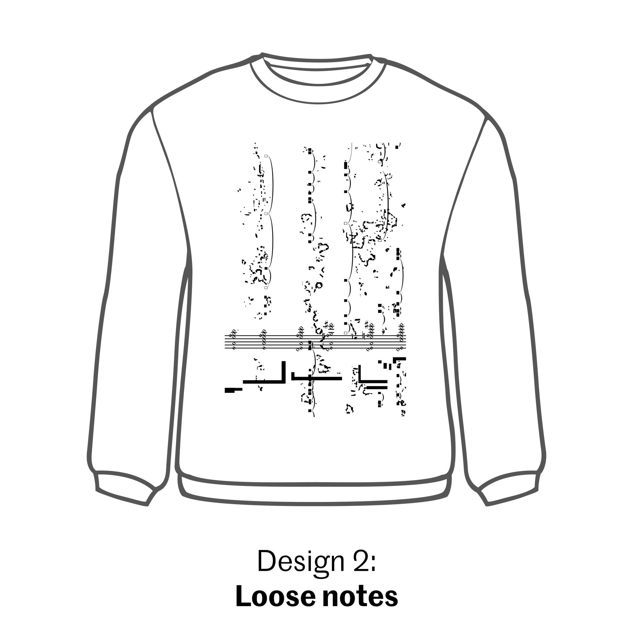 The jubilee sweater comes in four different designs: all excerpts from the composition Ieva Raubytė made for the Royal Conservatoire's 200-Jubilee. They have the jubilee logo small on the back-neck.
